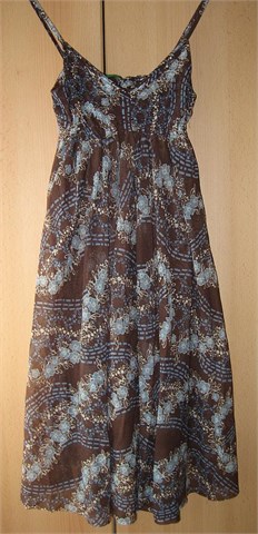 Na haljinici piše veličina XS ali mogu i veći brojevi, dio ispod grudi gdje je guma je prilično rastezljiv, jedino je dio za grudi manji i odgovara manjim brojevima. Dužina do ispod koljena.