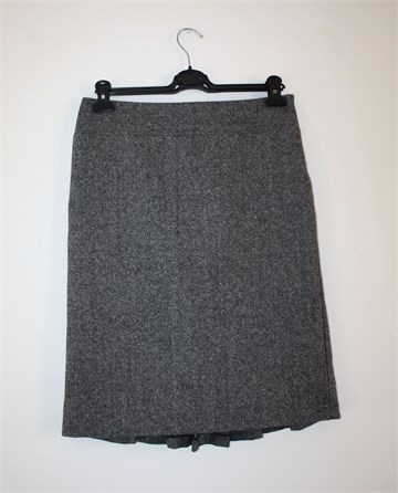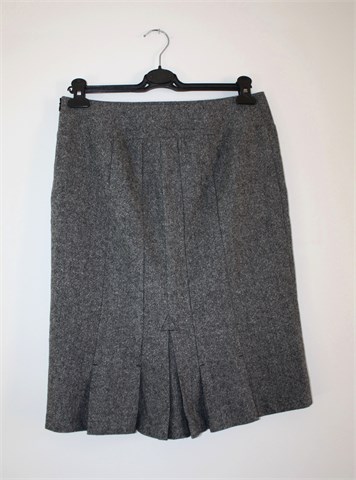 Benetton suknja prošarano sive boje, mekani štofasti materijal. Bočni cif, podstavljena. Sa stražnje strane ukrasne faldice i prošivi.