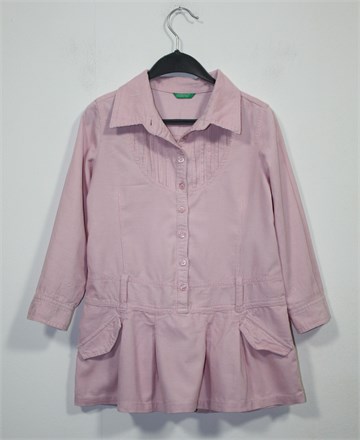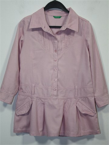 Benetton tunika od samta, svijetlo roze boje. Prednje kopčanje, pasica za remen i ukrasni bočni džepovi. Rukavi su dugi i na krajevima imaju kopčanje sa gumbima. Mekan i tanji samt.