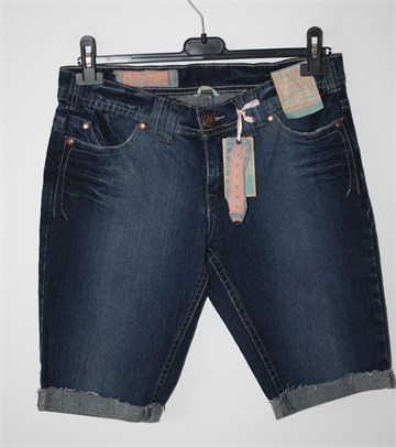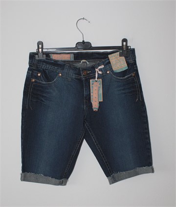 Bermude od trapera plave boje/used look. Prednji cif i kopčanje, pasica za remen. Prednji i stražnji klasični džepovi. Blago rastezljive.