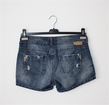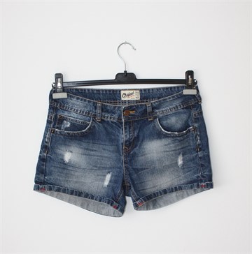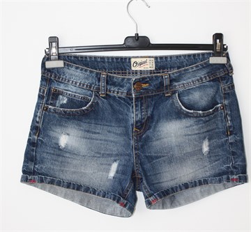 Bershka kratke traper hlače plave boje sa isprano/iscufanim izgledom (used look). Prednji cif i kopčanje, pasica za remen. Prednji i stražnji džepovi, nisu rastezljive.