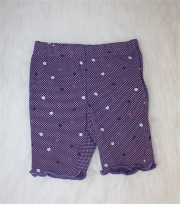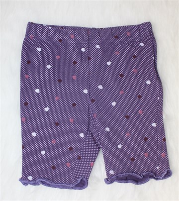 Berti (NKD) kraće hlače-tajice ljubičaste boje sa printom (boje i uzorak printa vidljivi na slikama). U pasicu je ušivena gumica pa je širina prilagodljiva (vidjeti mjere). Mekane i rastezljive.