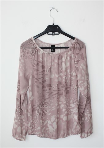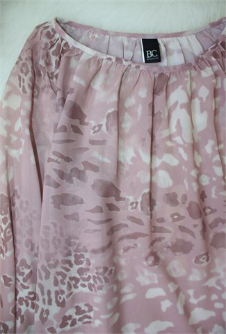 Best Connections bluza prljavo roze boje sa printom (boje i uzorak printa vidljivi na slikama). Gumica u pasici i na krajevima rukava. Tanja i lagana, providna. Nije rastezljiva.