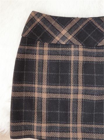 Best Connections suknja od debljeg štofastog materijala, crne boje sa uzorkom (boje i uzorci vidljivi na slikama). Stražnji cif i kopčanje, podstavljena. Nešto duža sa stražnje strane (vidjeti mjere).