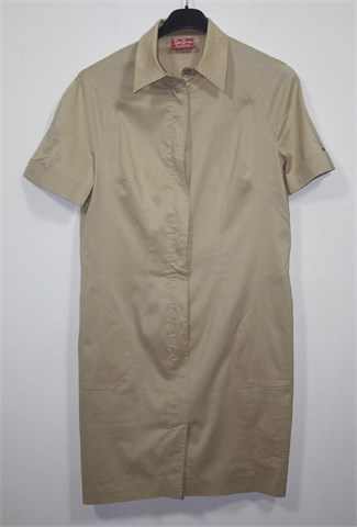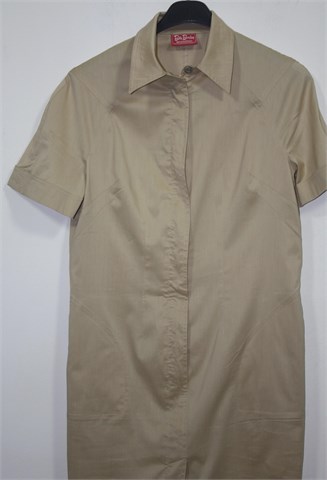 Betty Barclay haljina/tunika (krojena kao duga košulja) sa kratkim rukavima, blago sjajne bež boje. Prednji skriveni cif, kosi bočni džepovi. Prednji i stražnji ušitci, rastezljiv materijal.