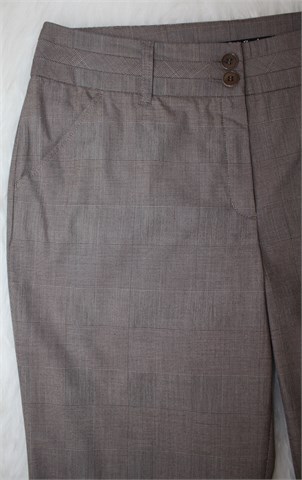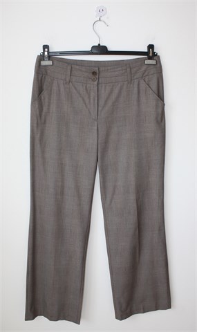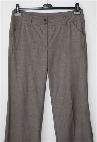 Betty Barclay hlače smeđe-bež boje sa uzorkom na materijalu (vidljivo na slikama). Prednji cif i kopčanje, pasica za remen. Prednji bočni džepovi, vrlo blago rastezljive.