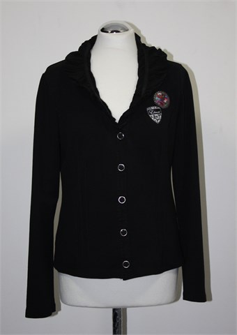 Betty Barclay majica sa dugim rukavima, prednje kopčanje sa drukerima pa se može nositi i kao blazer. Blago strukirana (ukrasni prošivi), ukrasni prišivci sa prednje strane. Deblji i rastezljiv pamuk.