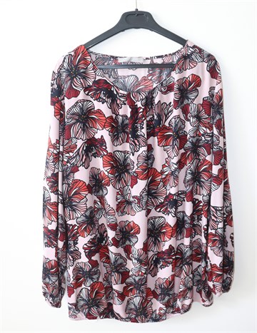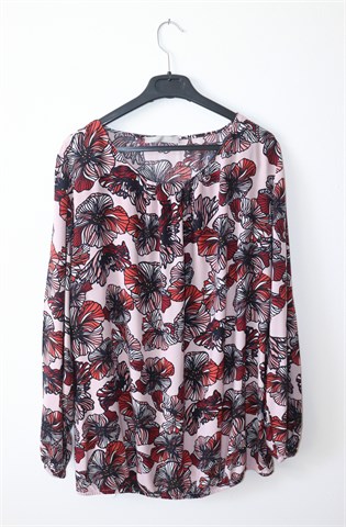Betty & Co bluza sa dugim rukavima, svijetlo roze boje sa šarenim printom (boje i uzorak printa vidljivi na slikama). Gumica na krajevima rukava i na pasici. Tanka i lagana, nije rastezljiva.