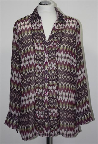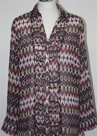 Bexleys košulja sa neobičnim, pomalo retro uzorkom, rukavi su dugi. Na prednjem dijelu (uz kopčanje) ukrasni prošivi sa faldama. Vrlo lagana i prozračna, napravljena od materijala koji se ne gužva (blago prozirna).