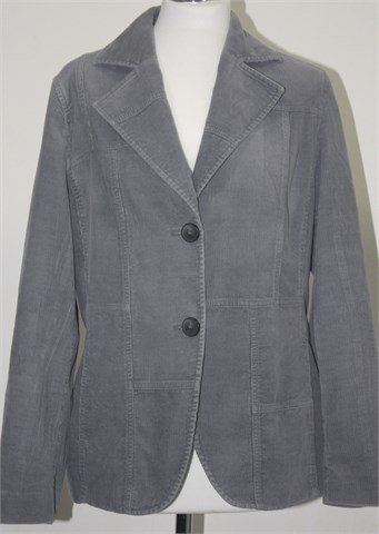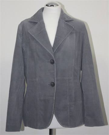 Bianca sako/jakna od samta, svijetlo sive boje. Prednje kopčanje, bočni džepovi. Podstavljena.