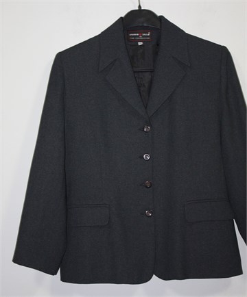 Bianco Ballo sako sa poludugim rukavima, boja je špricano (prošarano) tamnije siva. Prednje kopčanje, bočni džepovi sa preklopom (još uvijek zašiveni). Jastučići u ramenima, prednji ušitci. Nije rastezljiv.