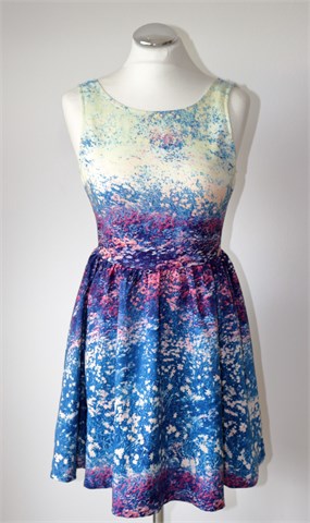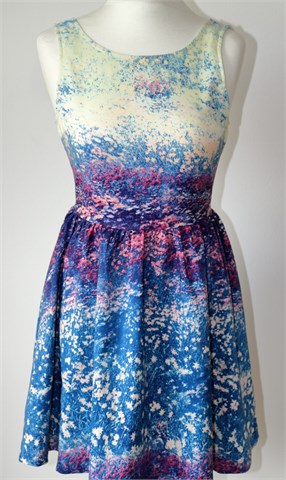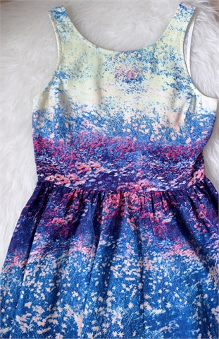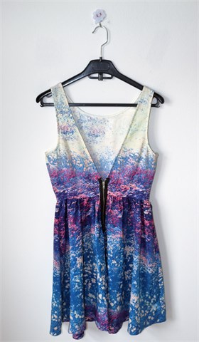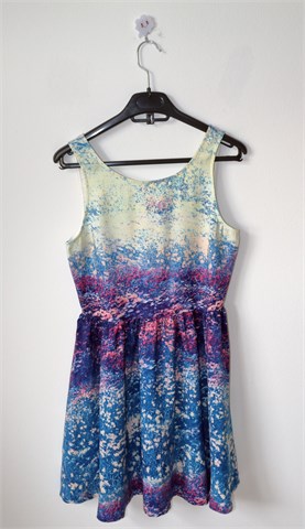 Bik Bok haljina bez rukava sa šarenim printom (boje i uzorak printa vidljivi na slikama). Stražnji cif, blago rastezljiva.