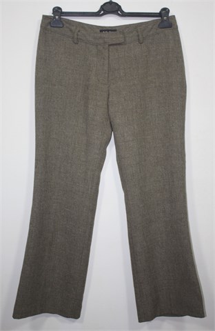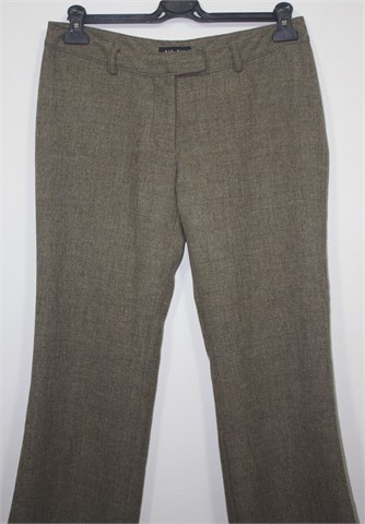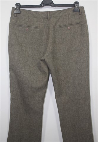 Bik Bok hlače od laganog štofastog materijala, prošarano smeđe-bež boje. Prednji cif i kopčanje, pasica za remen. Stražnji lažni džepovi sa gumbom. Lagan materijal, nije rastezljiv.