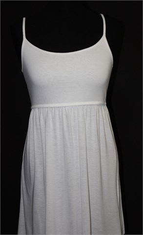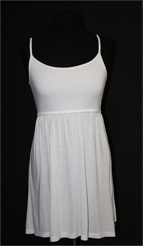 Bik Bok tunika/kratka haljina sa tankim naramenicama, bijele boje. Ispod prsiju gumica (prilagodljiva širina). Lagan i rastezljiv materijal, podstavljena u gornjem dijelu sa prednje strane (ostatak haljine nije - moguće providna).