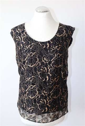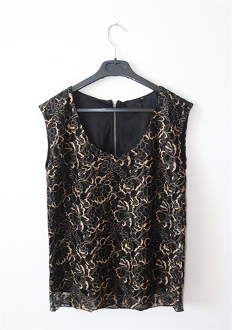 Black Lily top/majica bez rukava, materijal u izgledu čipke, kombinacija crne i zlatne boje. Podstavljena, vrlo blago rastezljiva.