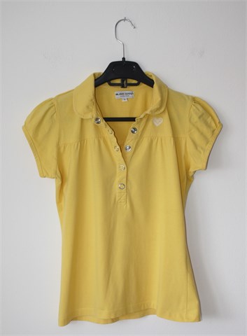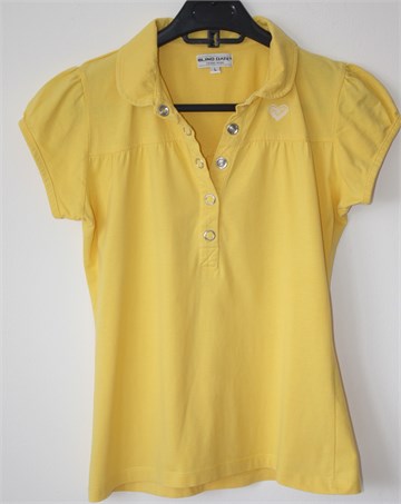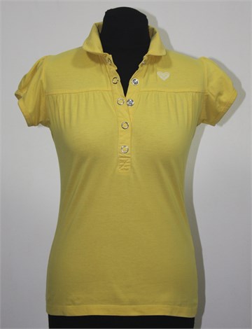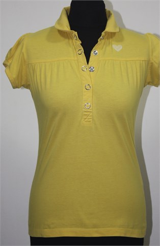 Blind Date majica sa kratkim rukavima, žute boje. Prednje kopčanje sa drukerima, končana aplikacija srčeka (od bijelog konca). Deblji i kvalitetan pamuk.