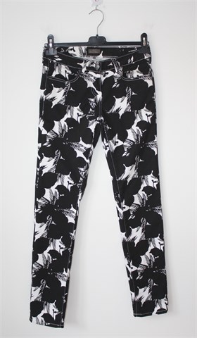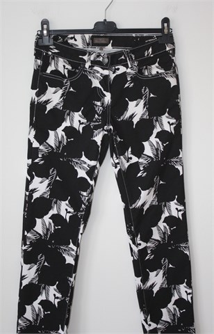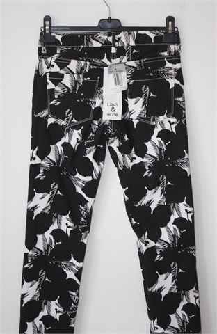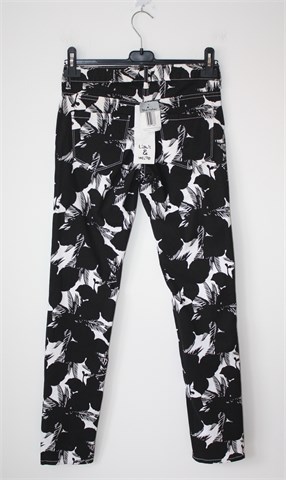 Blue Motion hlače crne boje sa bijelim printom (uzorak printa vidljiv na slikama). Prednji cif i kopčanje, pasica za remen. Prednji i stražnji džepovi (kroj traper hlača), blago rastezljive.