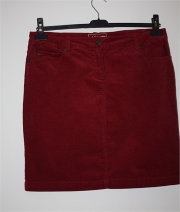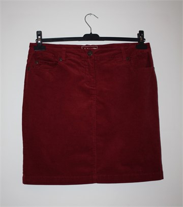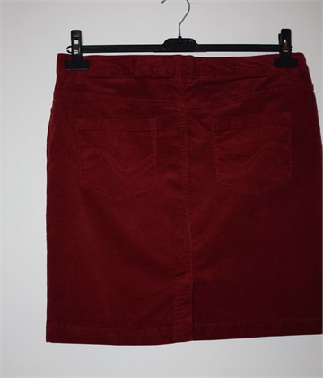 Blue Motion suknja od samta, tamnije zagasito bordo-crvene boje. Prednji cif i kopčanje, pasica za remen. Prednji i stražnji džepovi, mali stražnji rasporak. Blago rastezljiva.