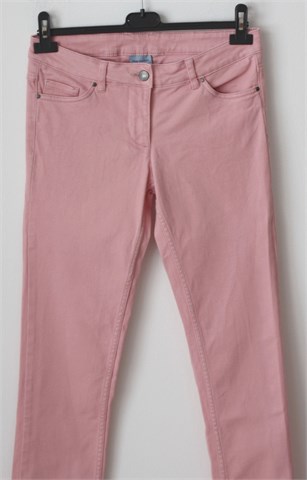 Blue Motion traper hlače roze boje (blago isprane). Prednji cif i kopčanje, pasica za remen. Prednji i stražnji džepovi, rastezljive.