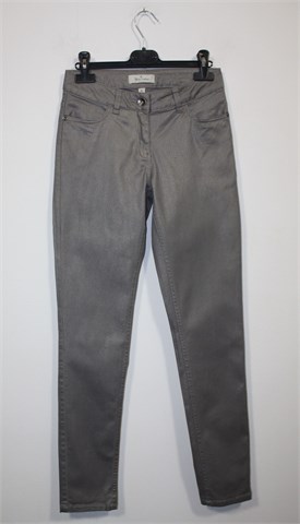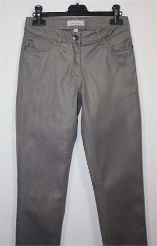 Blue Motion traper hlače sive boje sa zlaćano-srebrnim sjajem (mjestimične blago vidljive crtice). Prednji cif i kopčanje, pasica za remen. Prednji i stražnji klasični džepovi. Rastezljive.