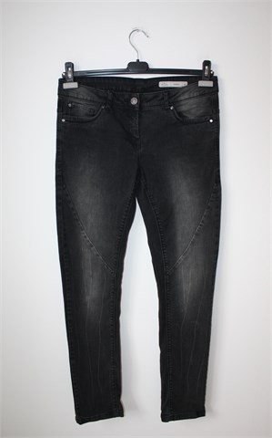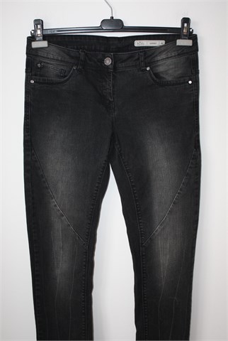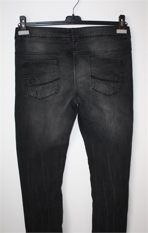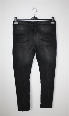 Blue Motion Denim Wear skinny traper hlače, tamno sive boje. Prednji cif i kopčanje, pasica za remen. Prednji i stražnji džepovi. Na nogavicama prošivi i blijede crte, mjestimično ispranog izgleda (tvornički). Rastezljive.