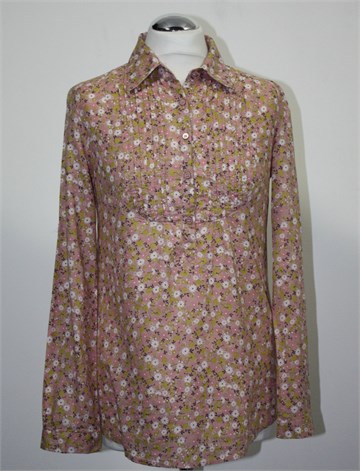 Bluza sa dugim rukavima (mogu se nositi i kao kraći - vanjski gumbić na rukavu i vezica unutar rukava), prljavo roze boje sa cvjetnim uzorkom (boje i uzorak kao na slikama). Prednje kopčanje i ukrasni prošivi u gornjem dijelu. Nije rastezljiva.