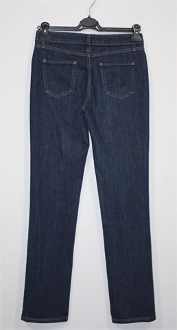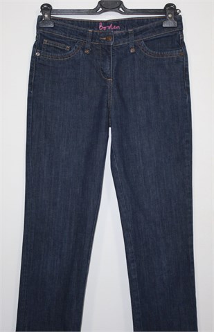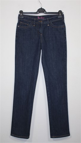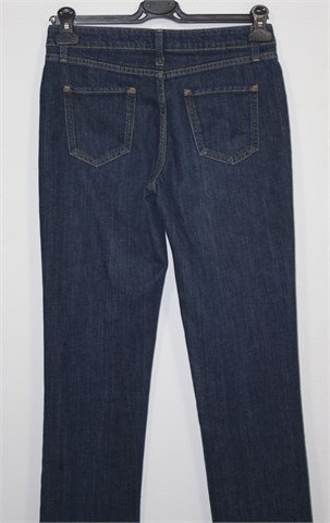 Boden traper hlače, tamnije plave boje. Prednji cif i kopčanje, pasica za remen. Prednji i stražnji klasični džepovi. Uže i ravne nogavice, blago rastezljive.