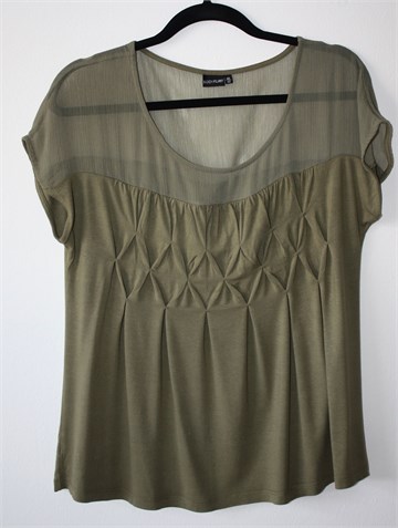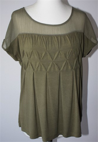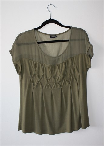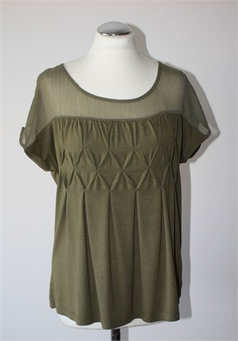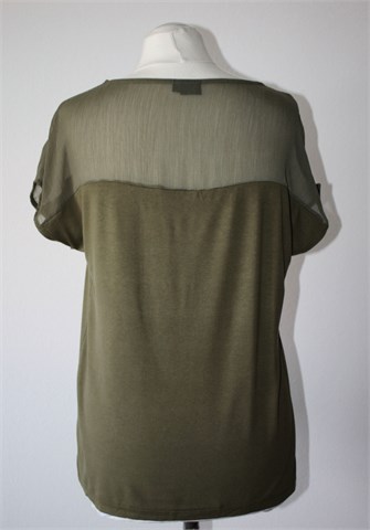 BodyFlirt majica sa kratkim rukavima, maslinasto zelene boje. Gornji dio majice providan materijal, donji dio rastezljiva viskoza. Ukrasni ušitci sa prednje strane.