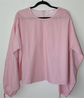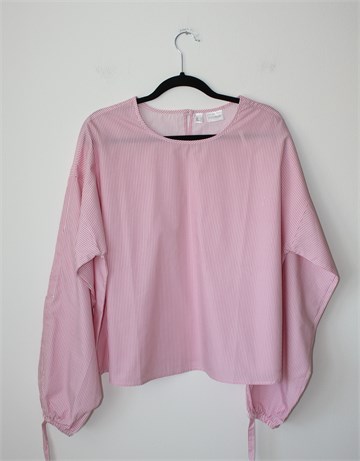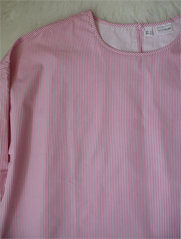 BodyFlirt prugasta bluza rozo-bijele boje (rukavi se mogu nositi i kao kraći - u rukav je ušivena vezica koja se po želji može stegnuti i zavezati). Širi model, spuštena ramena. Čvrst i nerastezljiv pamuk. Ravan kroj (nije strukirana), malo duža sa prednje strane.