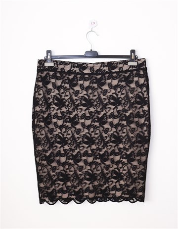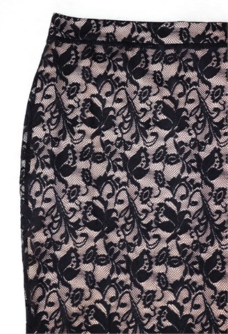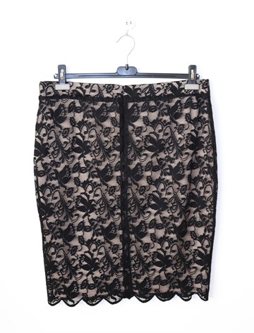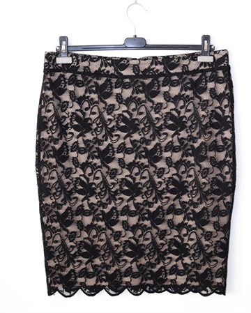 BodyFlirt suknja, vanjski dio materijal u izgledu čipke crne boje, podstava nude boje. Stražnji cif, rastezljiva.