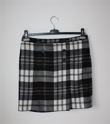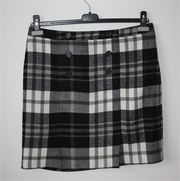 BodyFlirt suknja od tanjeg i mekanog štofastog materijala u kombinaciji crne, sive i bijele boje sa uzorkom na materijalu (vidljivo na slikama). Bočni cif, prednji ukrasni gumbići. Dvije male faldice na dnu sa prednje strane.