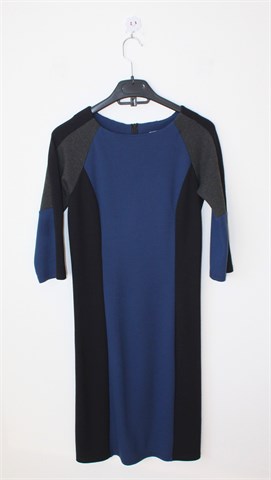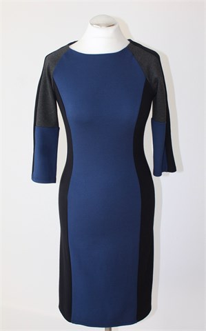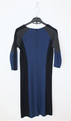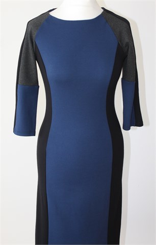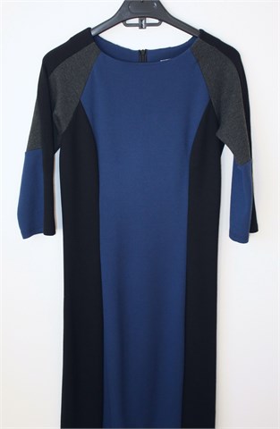 Bon'a Parte haljina sa poludugim rukavima, kombinacija crne, sive i plave boje (vidljivo na slikama). Sa stražnje strane cif, materijal je tanji i rastezljiv.