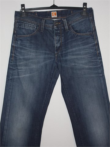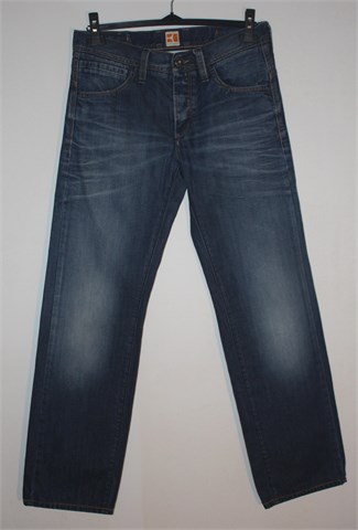 Boss Orange (Hugo Boss) traper hlače. Prednji cif i kopčanje, pasica za remen. Prednji i stražnji klasični džepovi, mjestimično ispranog izgleda. Nisu rastezljive. Mislim da je unisex model. Skraćivane, imaju originalan rub.
