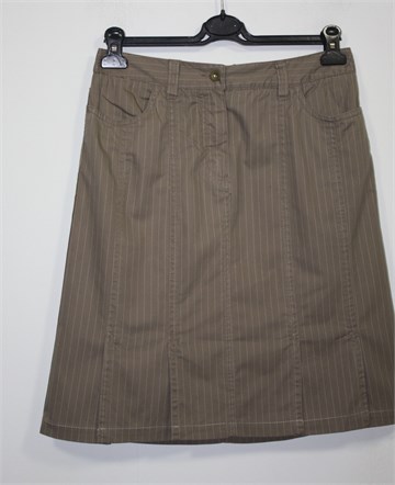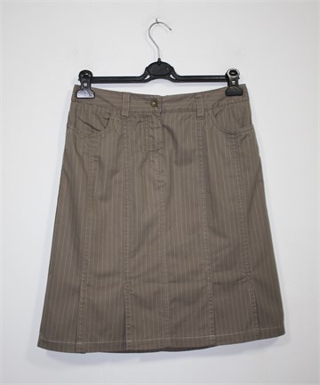 Brandtex suknja svijetlo smeđe/tamno bež boje sa prugama. Prednji cif i kopčanje, pasica za remen. Bočni džepovi.