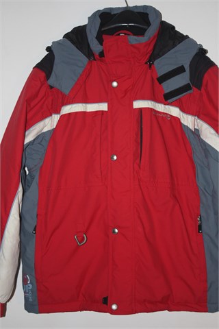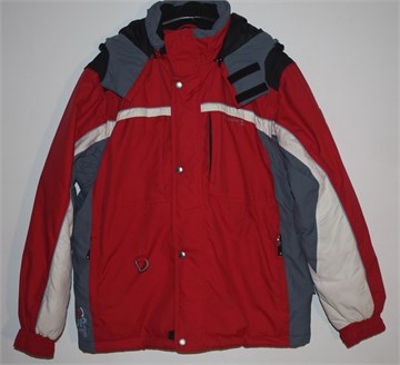 Brugi zimska jakna za ski sportove u kombinaciji crvene, bijele, crne i sive boje. Odvojivi rukavi pa se može nositi kao prsluk, odvojiva kapuljača. Prednje kopčanje na cif skriveno kopčanjem na drukere, unutarnje kopčanje. Puno džepova (izvana i unutar jakne). Oznaka je Brg snow - up mount winter sports.