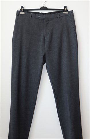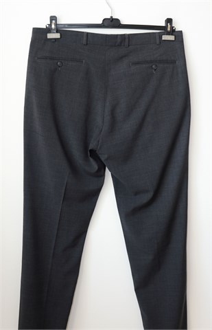 Bruhl hlače klasičnog kroja, prošarano tamno sive boje. Prednji cif i kopčanje, uska pasica za remen. Prednji bočni, stražnji mali džepovi sa gumbićem. Tanak i lagan materijal, blago rastezljiv.