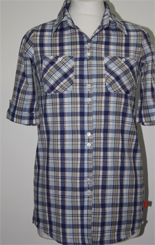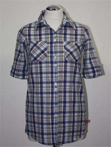 CFL (Colors for life) duža košulja bijele boje sa karirano-prugastim uzorkom. Prednje kopčanje, džepići na prsima. Prednji ušitci, mekan i nerastezljiv pamuk.