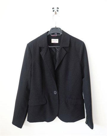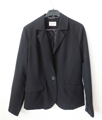 Cache Cache sako/blazer crne boje, klasičnog kroja. Tanki jastučići u ramenima, prednji džepovi. Strukirana, podstavljena.