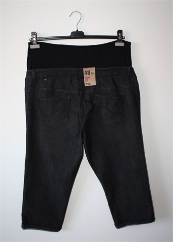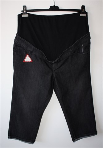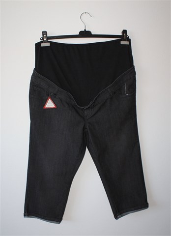Calin Kalin (Kiabi) poluduge traper hlače za trudnice, tamno sive boje. Prednji i stražnji klasični džepovi, prednji ukrasni gumb. Crna guma u struku, rastezljive.