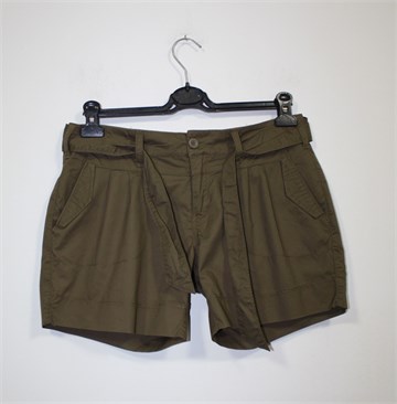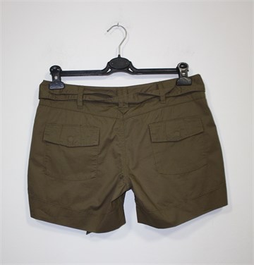 Calzedonia kratke hlače, maslinasto-smeđe boje (kao na slici). Prednji cif i kopčanje, pasica za remen sa pripadajućim remenom (može se skinuti). Prednji i stražnji džepovi, prednje faldice. Tanji i lagan pamuk.