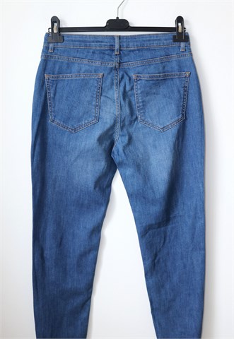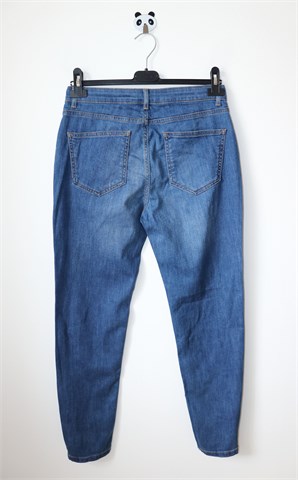 Calzedonia traper hlače, srednje plave boje, sa prednje strane aplikacije zvijezdica (vidljivo na slikama). Prednji cif i kopčanje, pasica za remen. Prednji ukrasni i stražnji klasični džepovi, blago rastezljive.
