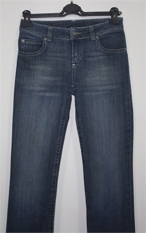 Camaieu traper hlače srednje plave boje mjestimično ispranog izgleda. Prednji cif i kopčanje, pasica za remen. Prednji i stražnji klasični džepovi. Blago rastezljive.