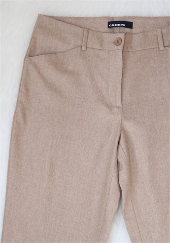 Cambio hlače od vune, prošarano bež boje. Prednji cif i kopčanje, pasica za remen. Prednji bočni, stražnji ukrasni džepovi. Lagane, tople i mekane.