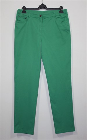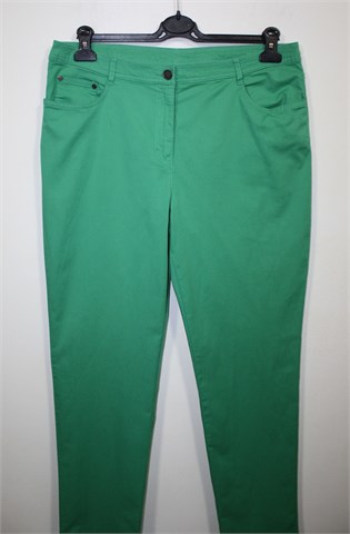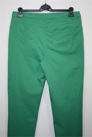 Canda (C&A) hlače lijepe zelene boje, materijal je kao tanji traper. Prednji cif i kopčanje, pasica za remen. Prednji i stražnji klasični džepovi (stražnji prošiveni sa zelenim koncem). Blago rastezljive.