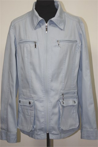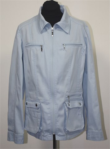 Canda (C&A) pamučna jakna, svijetlo plave boje. Prednji cif, bočni džepovi i lažni džepovi na prsima. Lagana.