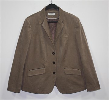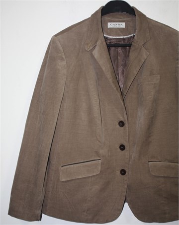 Canda (C&A) sako (ili jakna) od sitnog i mekanog samta svijetlo smeđe ili tamnije bež boje. Prednje kopčanje sa tri gumba, bočni džepovi i jedan džepić na prsima. Na krajevima rukava po tri ukrasna gumba (svi gumbi su drveni sa izrezbarenim ukrasima). Jastučići u ramenima, podstavljen. Blago rastezljiv materijal.