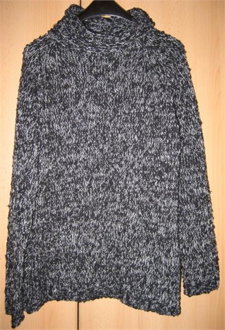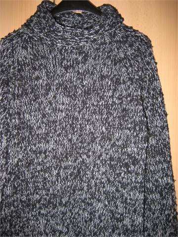 Dolčevita dugih rukava. Toplo i lagano pletivo. Kombinacija crne i bijele boje, prošarana. Mekana i vrlo rastezljiva.