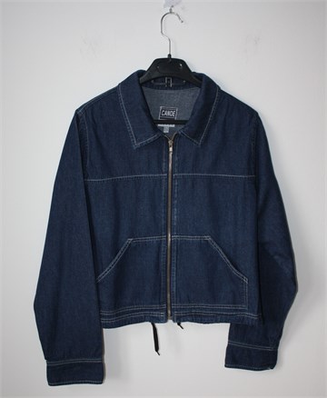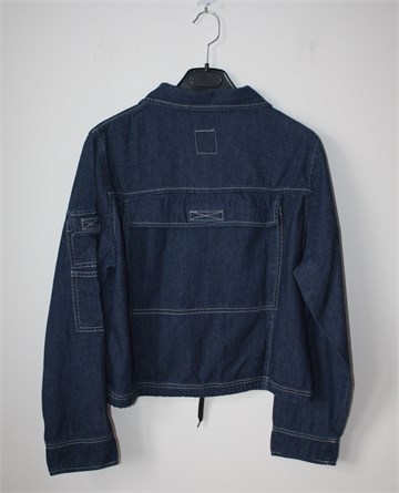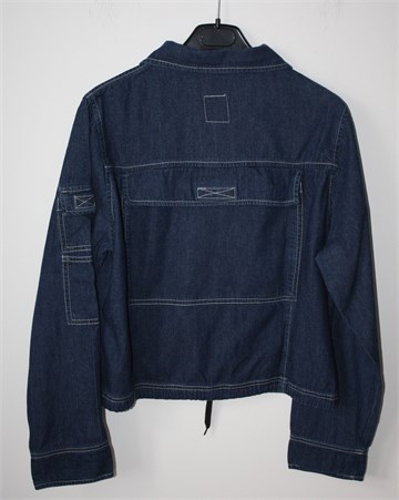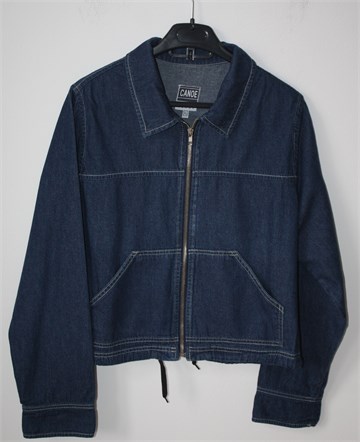 Canoe traper jakna tamnije plave boje, kopčanje sa cifom. Sa prednje strane klokan džep, na leđima veliki džep sa zatvaranjem na čičak traku. Na dnu pasice je uvedena špagica koja se po želji može stegnuti, džepići na rukavu. Lagan i mekan traper, nije rastezljiv.