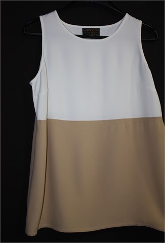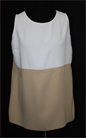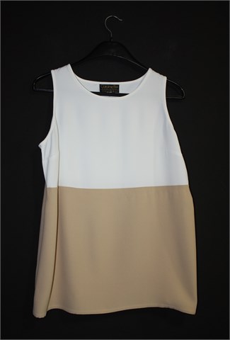 Caroline Biss bluza bez rukava, colourblock kombinacija bijele i bež boje. Deblji i teži materijal, gornji dio blago providan. Vrlo blago rastezljiva).