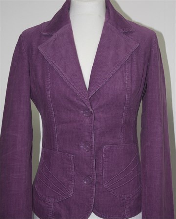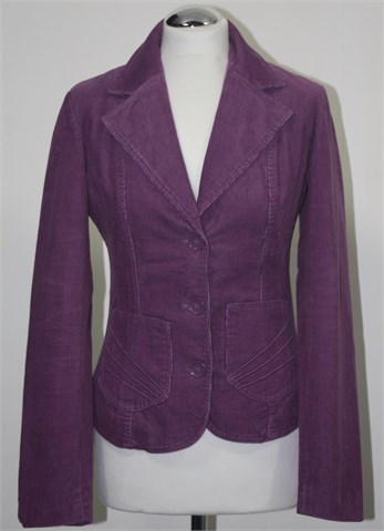 Carpe Diem jakna/sako od samta svijetlo ljubičaste/lila boje. Podstavljena (na jednom mjestu podstava je malo rastegnuta).  Jakna se kopča na tri prednja gumba i ima dva prednja džepa sa ukrasnim prošivima.